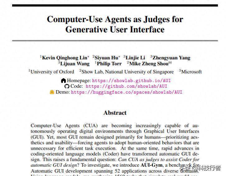 这项由牛津大学的Kevin Qinghong Lin、新加坡国立大学的Siyuan Hu和微软的Linjie Li、Zhengyuan Yang、Lijuan Wang等研究者联合完成的研究发表于2025年11月,论文标题为"Computer-Use Agents as Judges for Generative User Interface"。感兴趣的读者可以通过论文编号arXiv:2511.15567v1查询完整论文。