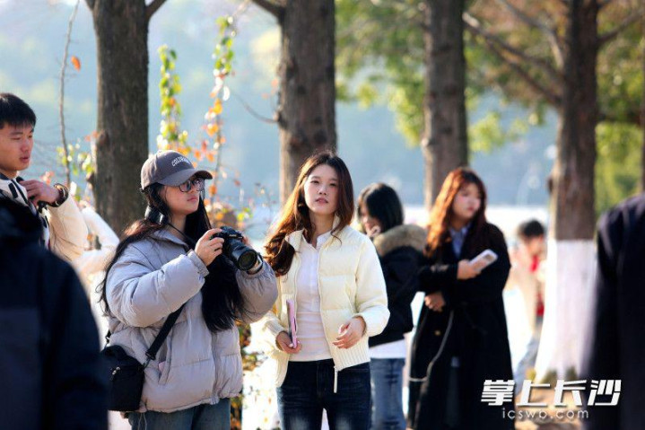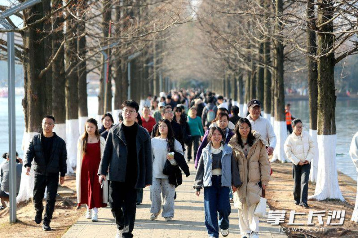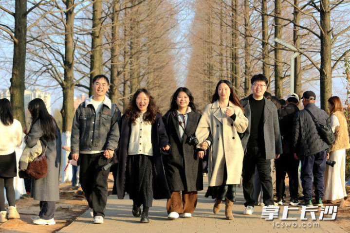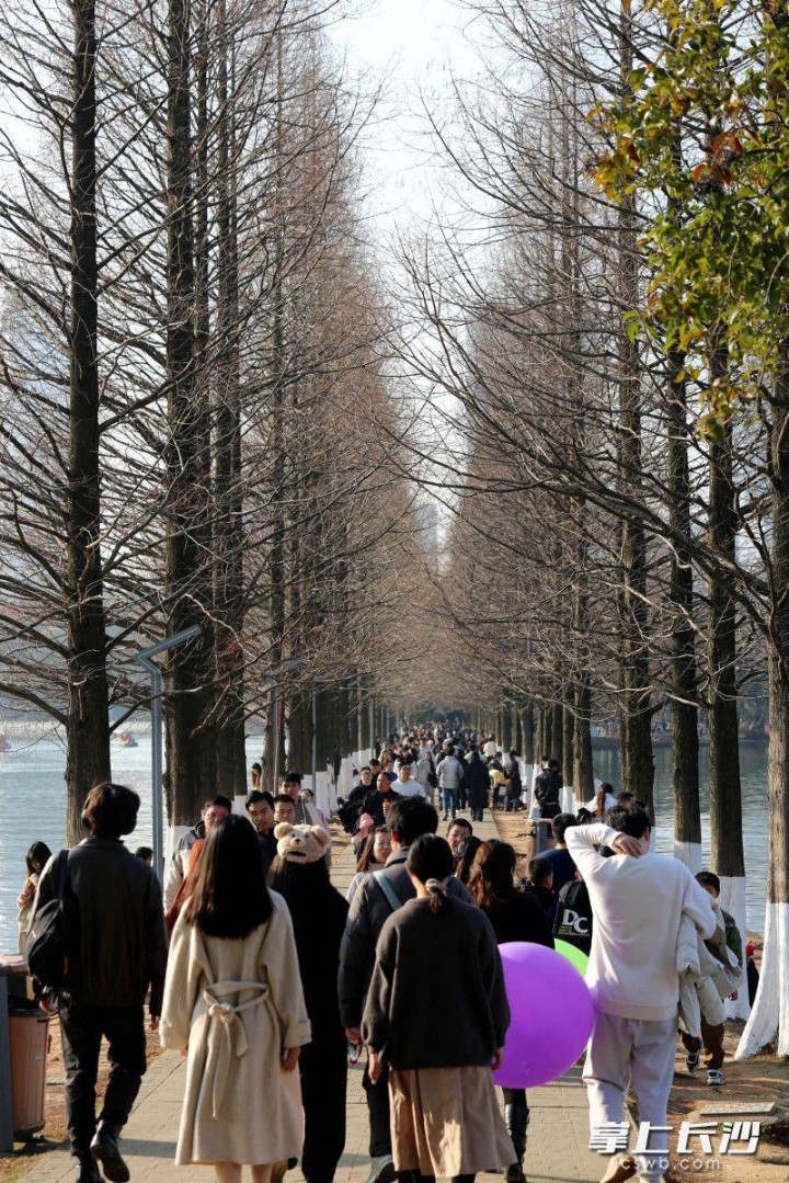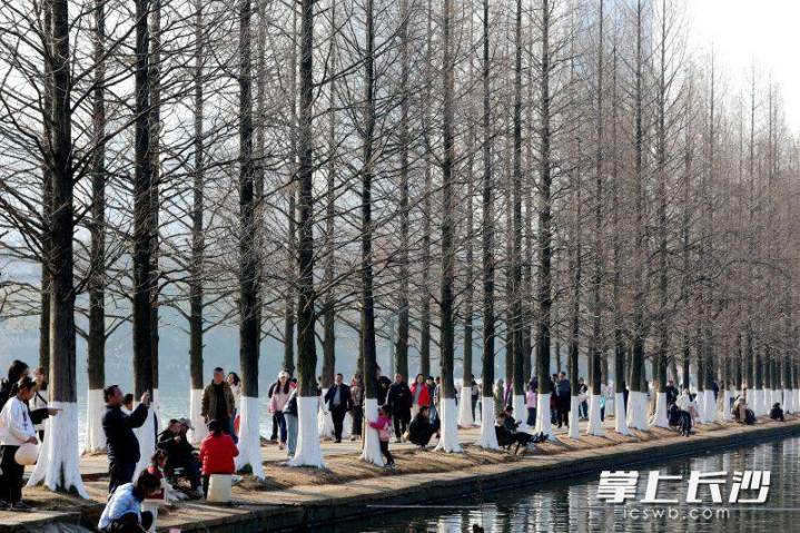 长沙晚报掌上长沙1月12日讯(全媒体记者贺文兵摄影报道)昨日,长沙冬暖如春,湖南烈士公园年嘉湖中堤,水杉一条街游人如织,成为长沙冬日最火的打卡地。笔直挺拔的水杉虽然褪去了叶片,但在阳光照射下泛着温柔光泽,与澄澈湖水相映成趣,勾勒出“树在水中生,人在画中游”的绝美意境。
